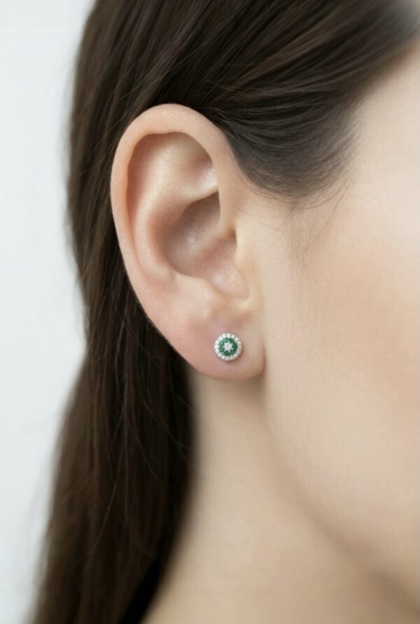 Su estructura minimalista y moderna sirve de escenario perfecto para una hilera de diamantes naturales seleccionados a mano. El resultado es una joya que captura la luz con cada movimiento, aportando una elegancia sutil pero poderosa a tu rostro.