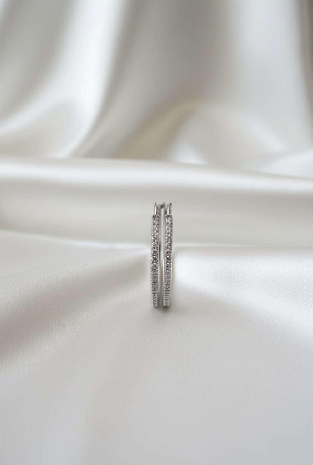 Estas irresistibles argollas en oro blanco de 18K y diamantes naturales han sido diseñadas para la mujer que reconoce el valor de lo auténtico y no espera a que nadie más se lo regale.