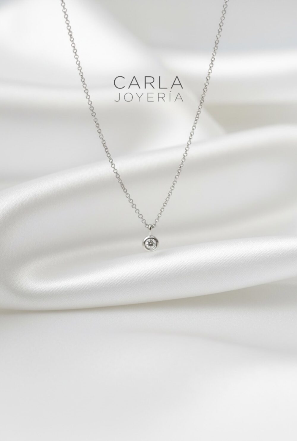 ¿Buscas ese detalle que sea pura delicadeza y elegancia sutil? Esta cadena de 45 cm en oro blanco de 18K es la definición de “menos es más” en formato mini. Presenta un solo diamante de talle brillante, seleccionado por su fuego, montado en un bisel que lo protege y realza su brillo natural.