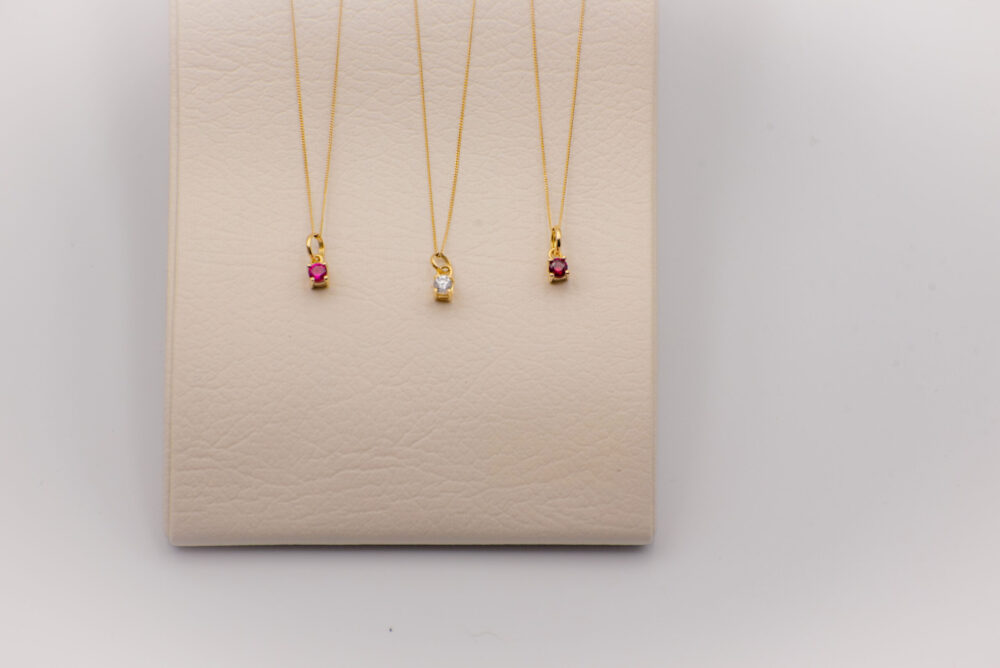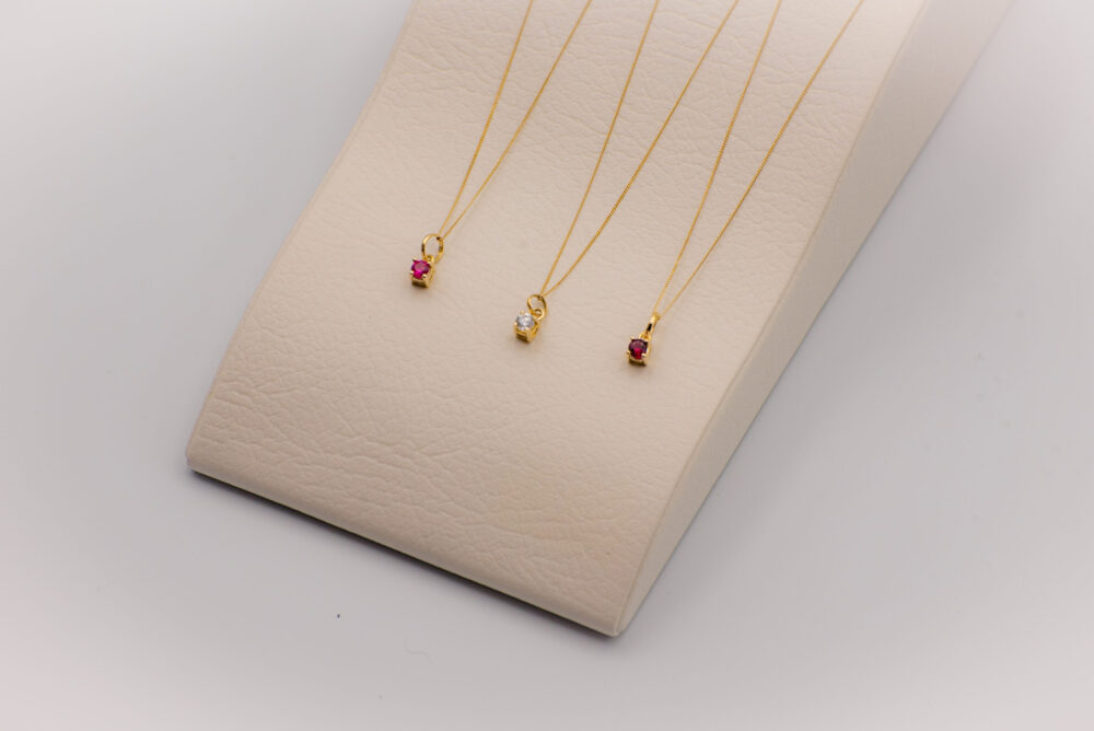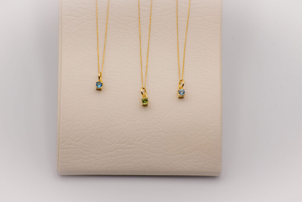 Dije modelo solitario con base de oro amarillo de 18K y piedras naturales semipreciosas.