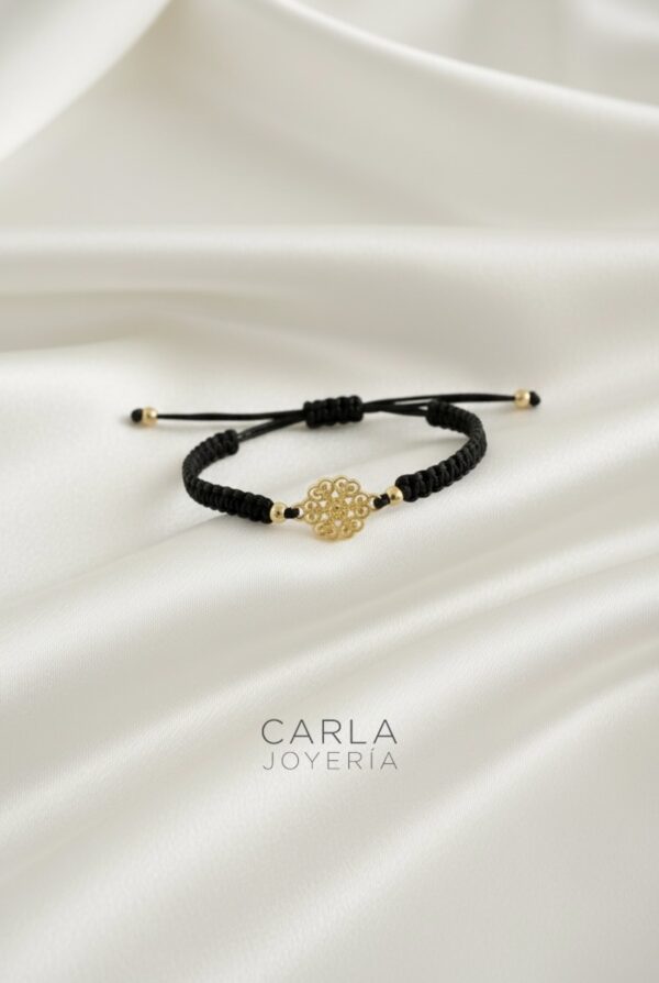 - Material: Oro de 18K (Dije de infinito, balines laterales y terminales).
